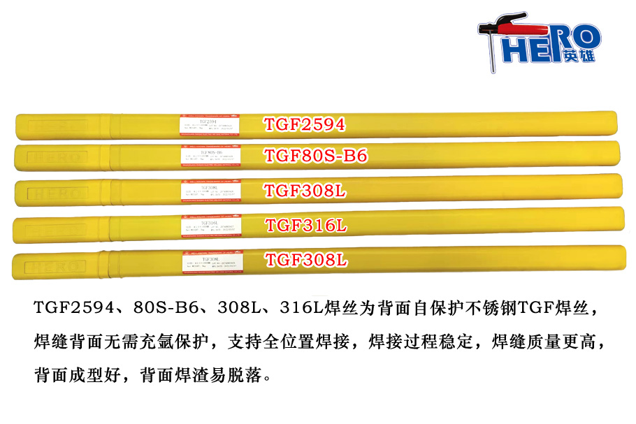 TGF2594為背面自保護(hù)不銹鋼TGF焊絲,焊縫背面無(wú)需充氬保護(hù),支持全位置焊接,焊接過(guò)程穩(wěn)定,焊縫質(zhì)量更高,背面成型好,背面焊渣易脫落。