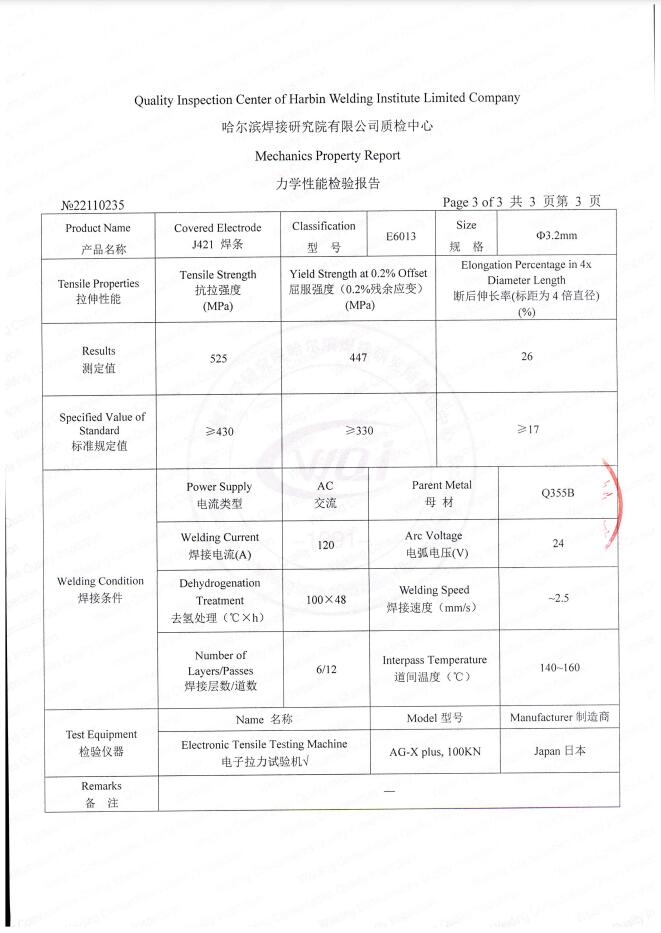 J421(E6013)檢測(cè)報(bào)告檢測(cè)報(bào)告