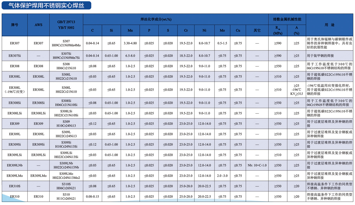 不銹鋼實(shí)芯焊絲既可用惰性氣體保護(hù)焊(TIG,MIG焊)。也可用于埋弧焊。不銹鋼MIG焊既可達(dá)到高效焊接,又容易實(shí)現(xiàn)焊接自動(dòng)化,廣泛用于堆焊及薄板接等領(lǐng)域。