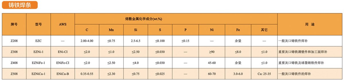 鑄鐵焊條Z208 Z308 Z408 Z508
